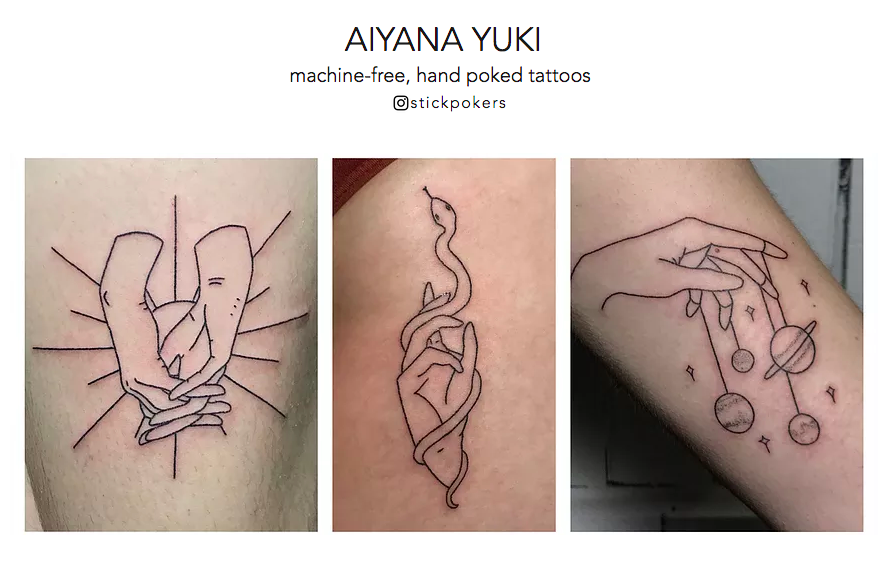 /If you live in Seattle and are active on Instagram, or at least mine, you’ve seen Aiyana Inatsu’s tattoo work. Specializing in stick and poke, and this isn't the stick and poke that you were given in your college dorm by your questionable floormate. Inatsu’s work is delicate and most precise with the single needles of her choosing. Tattooing began with her fascination of being able to permanently change yourself; it's not a thousand dollar surgery that you're investing in, you're investing in art and someone’s creativity.