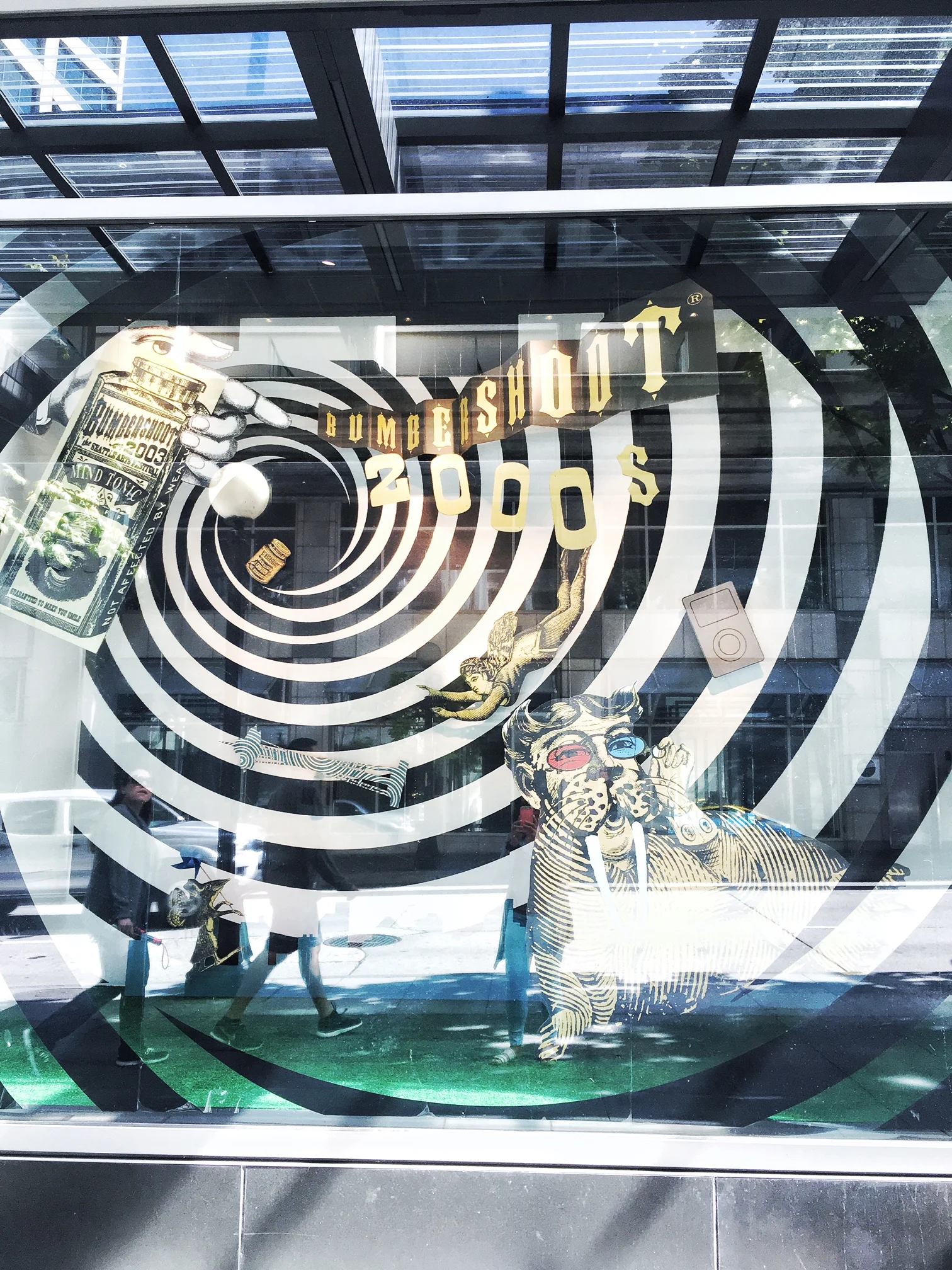 The window displays will remain in place through Bumbershoot, which takes place at Seattle Center this weekend, September 2-4.