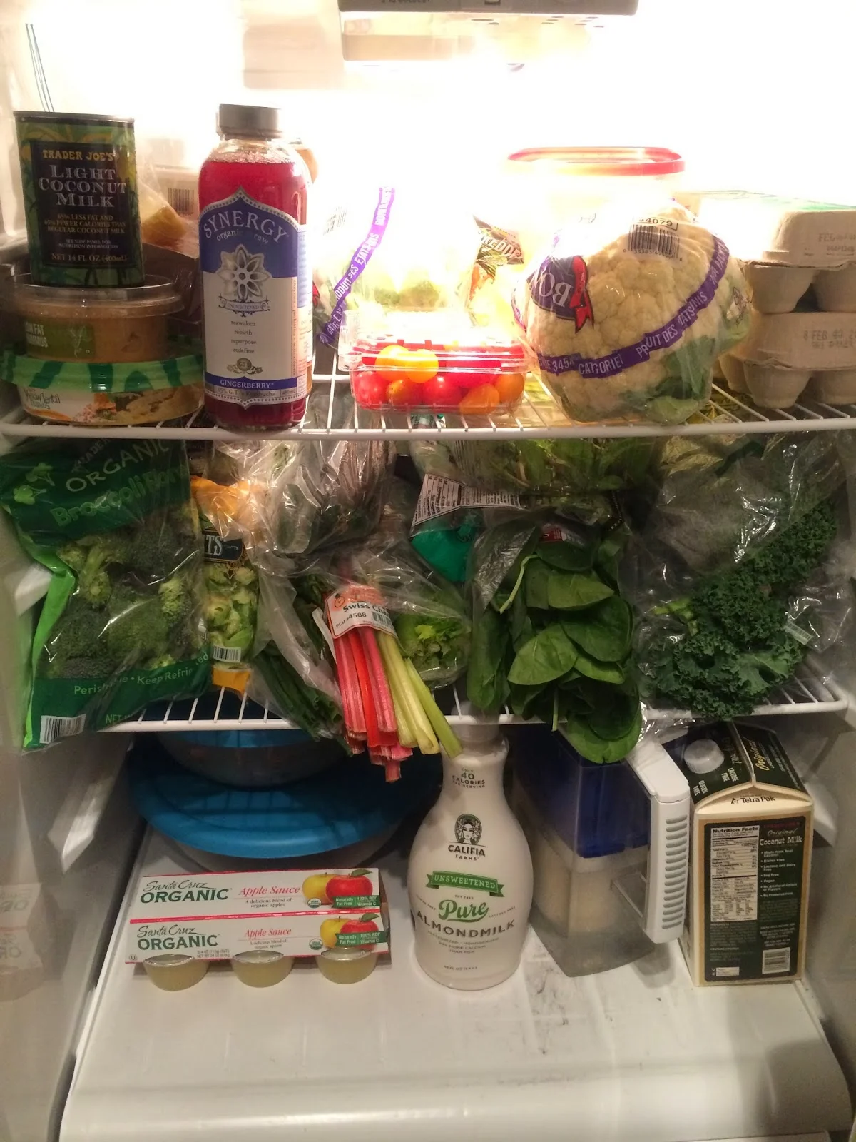 My fridge for Resolution Challenge 2014 week one detox. Green monsters took over again!