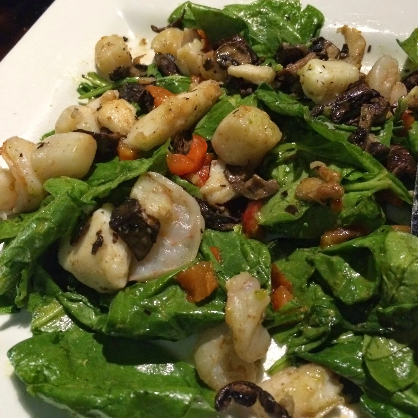 I ordered the Seafood & Spinach salad at the new Agave restaurant in Queen Anne. No cheese, tossed in olive oil. Super delish!
