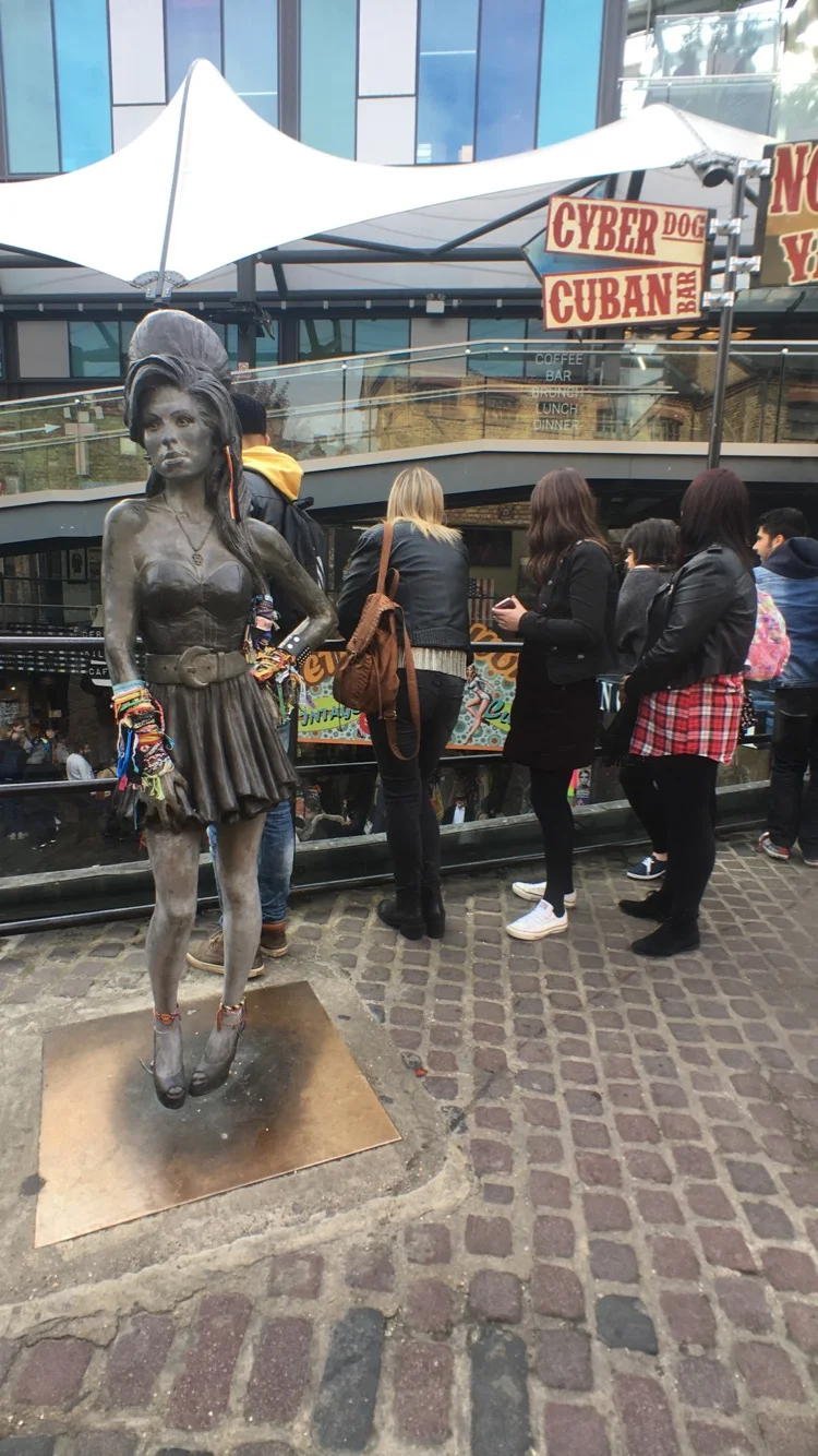Our last full day in London started off in Camden Town to take in Camden and Stables Market. There's a big, green sign that says Camden Market right when you come up from the Camden Town underground station, but that's not it. That's the procession of tourist trap vendors who want to sell you screenprint tees and postcards before you even get to it. Camden Market itself is about a quarter-mile walk away, so stay strong amongst the vendors and keep going! The Market is full of delicious food and handmade goods, but also full of people. Before it got to be too much, we took in the sights at CyberDog, What Goes Around Comes Around vintage, Cereal Killer Cafe and the maze of fun vendors. Make sure to get a matcha latte at Yumchaa to keep warm, and don't forget to pay homage to the queen Amy Winehouse at her statue in Stables Market!