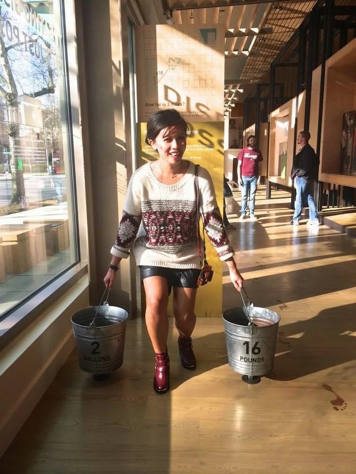 Testing my muscles out at the Gates Visitor Center. Gained a new level of respect for the women in Africa who haul buckets of this size & weight for miles to bring clean water to their families!