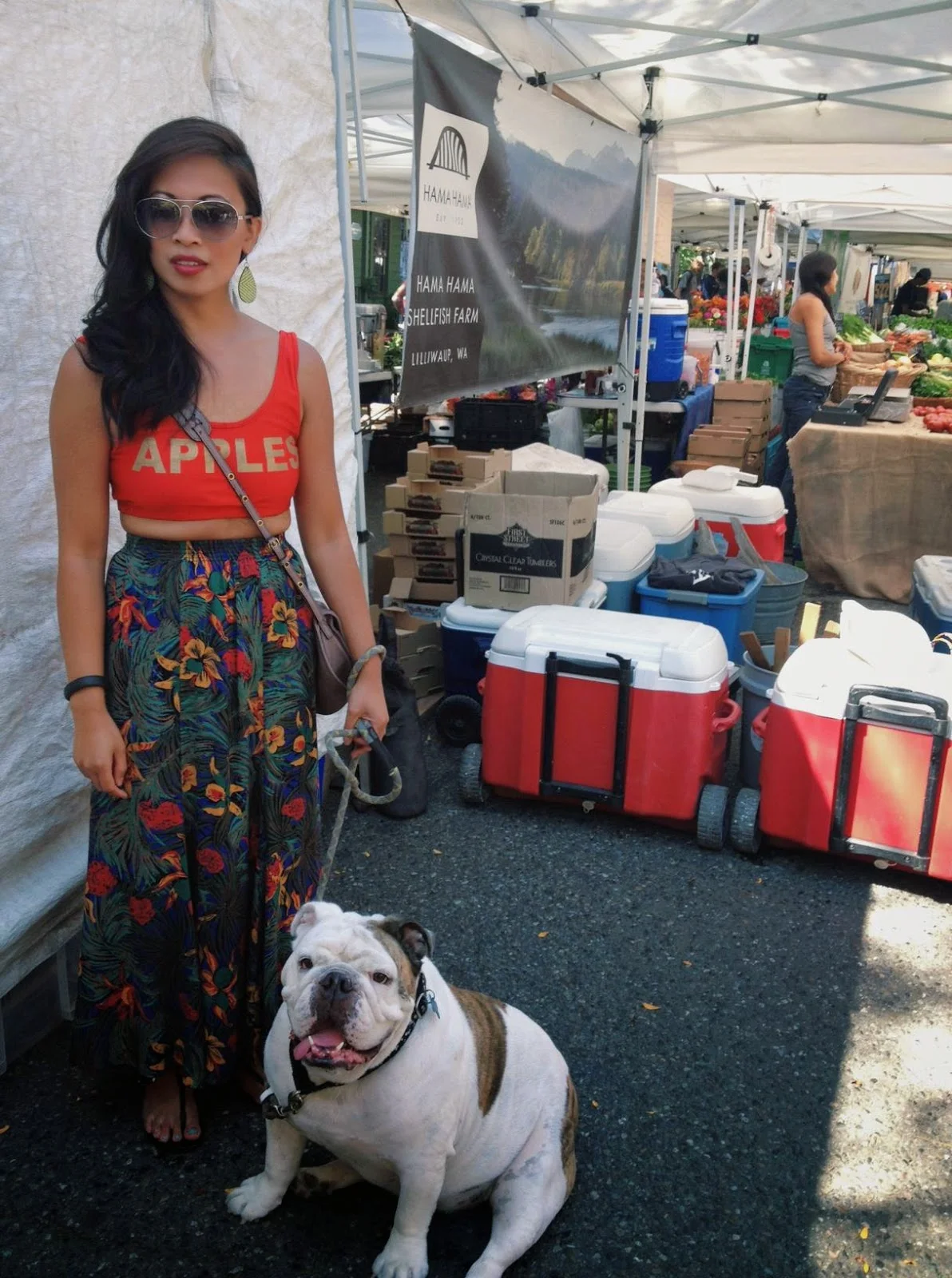 Keeping cool with Spike baby at the Ballard Farmer's Market