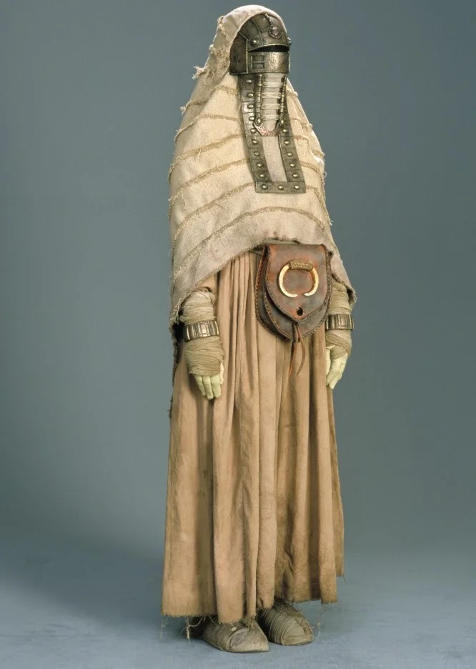 George Lucas imagined and created a fantastical world filled with dynamic characters who told the timeless story of the hero’s journey. The costumes shaped the identities of these now famous characters, from the menacing black mask of Darth Vader and the gilded suit of C-3PO, to the lavish royal gowns of Queen Amidala and a bikini worn by Princess Leia when enslaved by Jabba the Hutt.